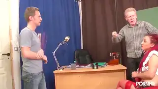 Порно видео Групповуха, - Парень вместе со своим старым приятелем заказывают шлюшку. Сучка в юбочке сперва даст отиметь себя молодому красавчику, а потом в дело подключается старый пердун.