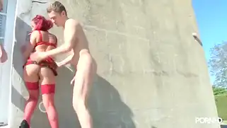 Старый пердут выебал молодую телочку с другом на свежем возбухе