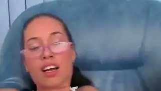Очкастая телка в прозрачном белье берет в рот и трахается