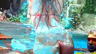 Латинка искупалась с чуваком в бассейне и поеблась рядом с ним