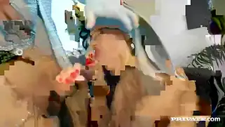 Краля с анальной пробкой в попке стонет от члена в пизде и облизывает подружке соски
