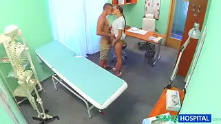 Порно видео Минет, Врач - Пошлая телка врач на работе не прочь потрахаться с молодыми парнями, которые часто к ней заходят. Вот и сегодня она будет скакать на члене молодого парня у себя в кабинете.