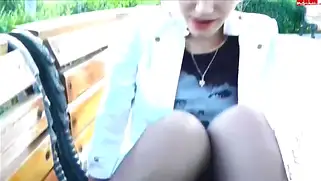 Русское публичное порно, где баба на скамейке дрочит ногами хуй