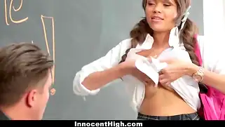 Порно видео Минет, Мужик трахает в рот - Грудастая телочка в короткой юбочке пришла к мужику и умоляет его исправить оценки и не отчислять. Так что она решает дать себя выебать. Это может спасти её положение. Она отлично сосет и трахается.