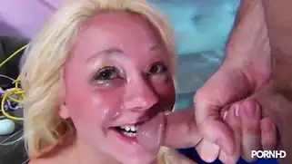 Русскую кралю с натуральными титьками классно трахнут, заливая лицо спермой