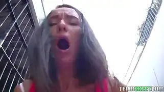 Публичная ебля Натали Голд в городе с поеданием спермы парня