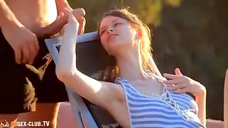 Молодая русская сучка любит пососать хуй и поебаться на лежаке