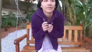 Порно видео Мастурбация, Девушка дрочит киску - Молодая темноволосая девушка любит играться со своей киской, сегодня телочка проводит сеанс мастурбации в публичном месте, широко раздвигая ноги на лавке