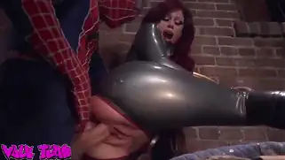 Массовая ебля супергероев в сексуальных фетиш костюмах под музыку