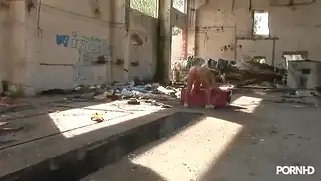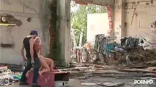 Групповая ебля с двойным проникновением в заброшенном здании