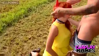 Красивый секс в поле с сексапильной красоткой и страстным парнем