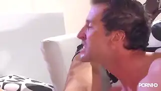 Сильно сжав жопу руками, мужик насаживаешь проститутку на хуй