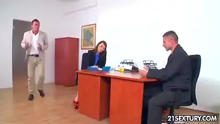 Симпатичную сучку жестко отжарили в пизду и жопу двое коллег