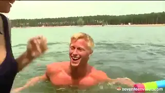 15K Порно видео В Сперме, - Блондин и грудастая брюнетка трахаются на берегу водоема
