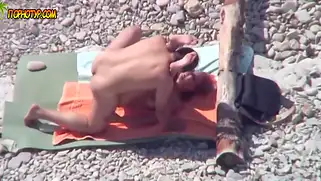 Мужик и его баба ебутся на пляже, а их снимает скрытой камерой