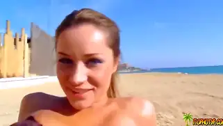 Горячая русская шлюха сняла трусы на улице и поебалась на пляже