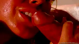 Грудастая блондинка в ванной с чувством отдается мощному парню