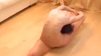 - Голая гимнастка встает на мостик, садится на шпагат и позирует