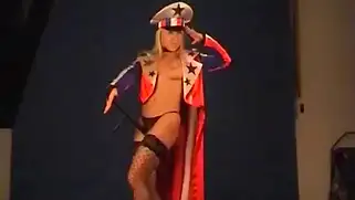 Красивая грудастая гимнастка позирует полуголой в фуражке
