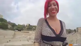 Сисястую шалаву с красными волосами трахнули в пизду и рот