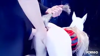 Фетиш порно в маске с бабой, у которой в жопу вставлен хвост