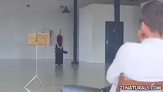 Мужик вылизал пизду скрипачке, а после страстной ебли кончил внутрь