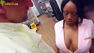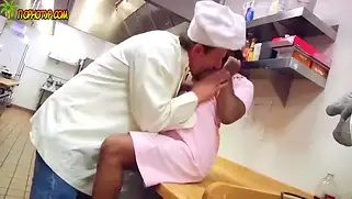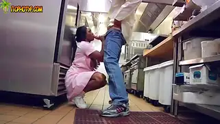 Негритянка устраивает в ресторане сумасшедший трах с шеф поваром