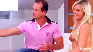 Стройная блондинка наслаждается трахом и ловит сперму ртом