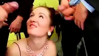 Сисястую брюнетку в чулках выебли толпой и скопом обкончали