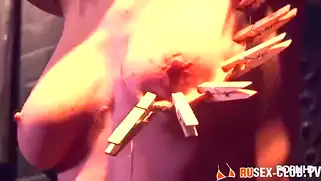 БДСМ доминирование над блондинкой, которую подвесили за руки
