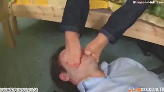 Русская госпожа таранит самотыком жопу парня и заставляет лизать