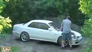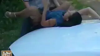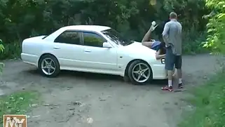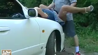 Ебля на капоте в лесу с грудастой темноволосой проституткой