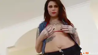 Татуированную сучку с маленькой грудью смачно дерут в обе дырочки