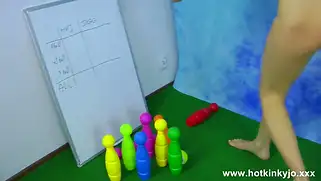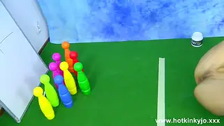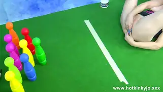 Смелую телку поставили раком и засунули в жопу руку и кеглю