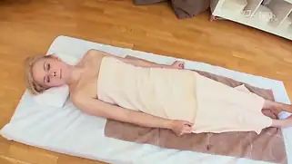 Японский массажист добрался до нежной блондинки и кончил в мохнатку