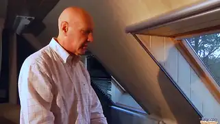 Порно видео В Сперме, Молодая - Пожилой крепкий пенсионер и молодая сучка с каштановыми волосами ебутся на чердаке, мужик трахает сучку раком, наваливает на клык и кончает на губешки бляди