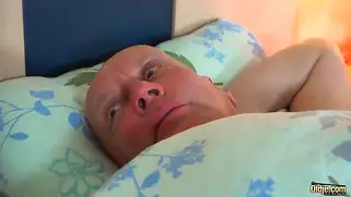 Стройная сучка лижет яйца старику и трахается с лысым мужиком