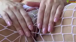 45K Порно видео Мастурбация, Трах видео - Надела колготки в сеточку и подрочила киску перед камерой