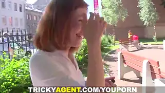 Порно видео Кастинг, Молодая - Молодая русская простушка пришла на порно кастинг, в надежде, что она уедет в разные страны сниматься в порнухе. Но получила она всего лишь секс с фейковым порно агентом.