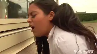 Худенькой Ольге попку спермой заливает после траха на природе у машины