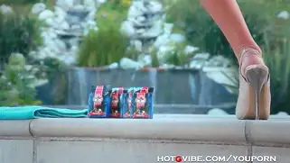 Красивая порно модель села у бассейна подрочить писю вибратором
