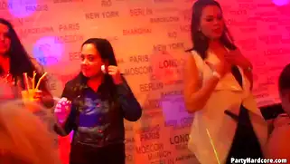 В ночном клубе разаномастные красотки сосут члены и трахаются