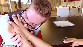 Азиатка фетишистка в офисе развела на секс очкастого шефа