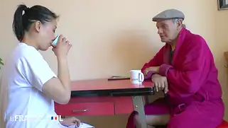 Старик угостил азиатку возбудителем и вдул красотке после куни