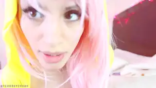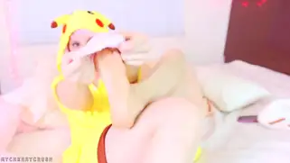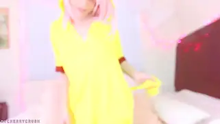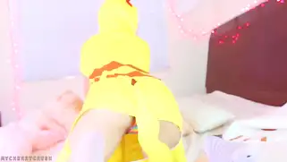 Гламурная цыпа сняла ярко-желтый балахон и показала киску