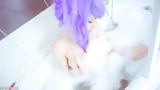 Порно видео В Ванной, - Гламурная телочка с синими волосами забралась в ванну и оттуда позирует перед веб камерой, красотка смазывает себя мылом и начинает дрочить киску пальцами