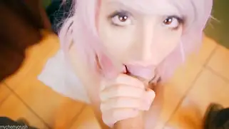 Порно видео В Сперме, Шлюшка - Когда телочки бояться делать минет, надо показывать им этот ролик, где нежная шлюшка с розовыми волосами не боится сосать очень большой хуй и получает сперму в рот