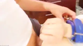 Порно видео В Сперме, Блондинка - Блондинка в сетчатых белых колготках трахается в наручниках, которые застегнуты за спиной, мужик ставит телочку рачком и ебет сзади, а затем дает пососать хуй