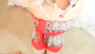 Краля худенькая в наряде горничной стонет громко от секса дикого на диване