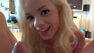 Порно видео В Сперме, Мужик сосет - Белокурая красавица Эльза субботним утром позирует перед мужем, который снимает телочку на камеру, девушка начинает делать минет от первого лица и мужик кончает
